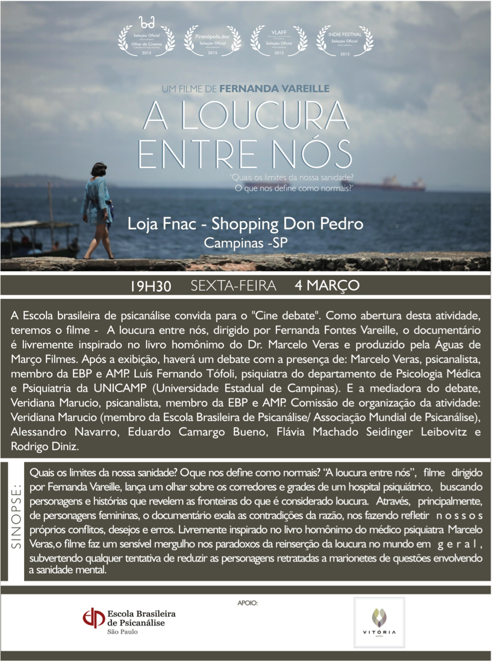 No próximo dia 01 de setembro de 2016, a Escola Brasileira de Psicanálise organiza a segunda atividade de um ciclo de debates que, através da exibição de filmes, promove a discussão entre psicanalistas e outros profissionais sobre a violência, o racismo e a segregação. O evento acontecerá na Livraria Cultura do Shopping Iguatemi.